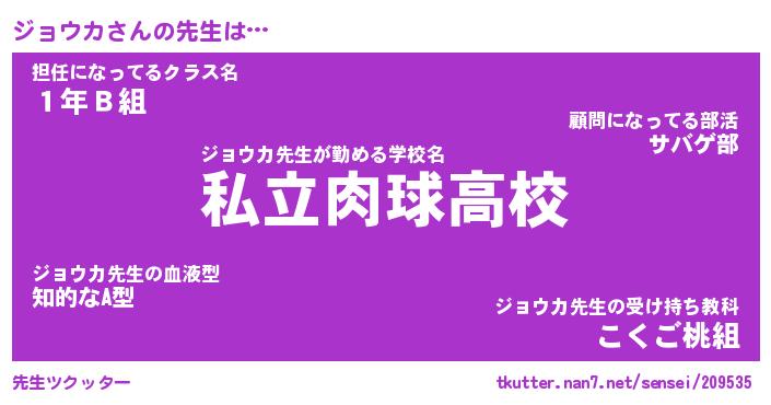 | 意味不明あだ名 | 『ペロリンジョウカ』『永久保存ジョウカ』 |