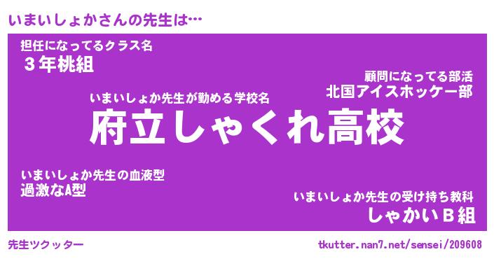 | ポケモン風あだ名 | 『イマチュウ』『イマイダネ』 |