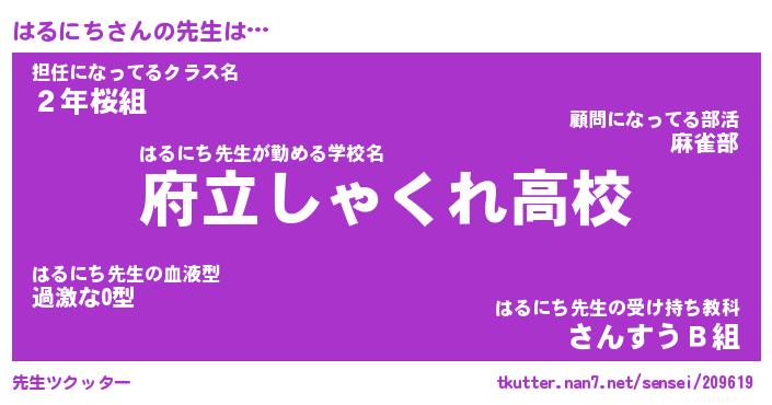 | 意味不明あだ名 | 『ペロリンはるにち』『永久保存はるにち』 |