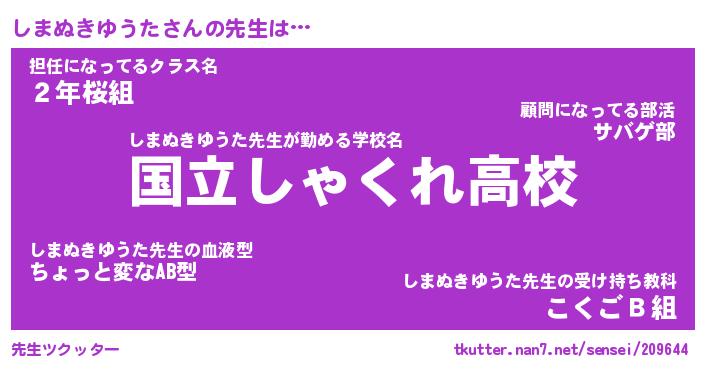 | 肩書あだ名 | 『しまぬきゆうた御曹司』 |