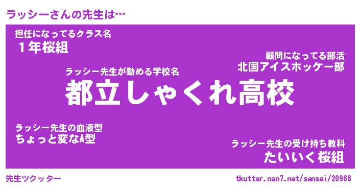 | 意味不明あだ名 | 『ペロリンラッシー』『永久保存ラッシー』 |