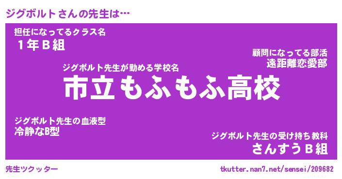 | ファンタジー風あだ名 | 『ジグフェル』『エターナルジグボルトー』 |