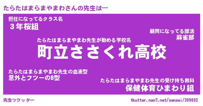 | ヘコむあだ名 | 『たらもー』『酢こんぶ』『たら太郎』 |