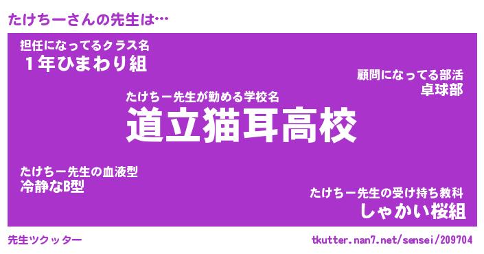 | 意味不明あだ名 | 『ペロリンたけちー』『永久保存たけちー』 |