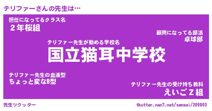 | ヘコむあだ名 | 『テリにー』『なまこ酢』『テリを』 |