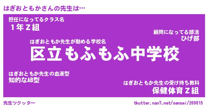 | ヘコむあだ名 | 『はぎにゅー』『つくし』『はぎを』 |