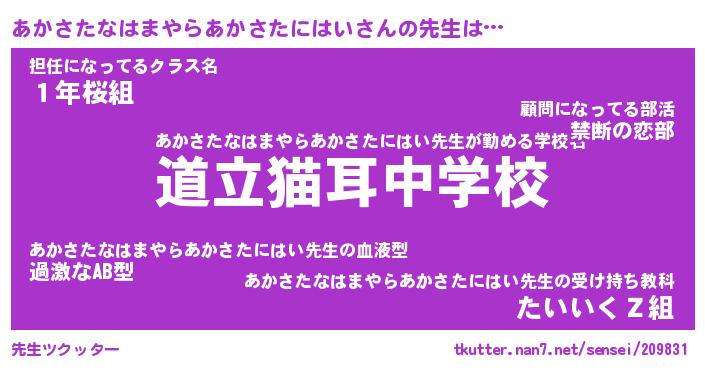 | ヘコむあだ名 | 『あかにー』『つくし』『あか太郎』 |