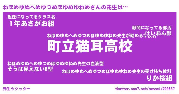 | 意味不明あだ名 | 『ペロリンねほめゆぬへめゆつめほゆぬゆねめ』 |