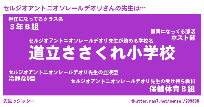 | 欧米人風あだ名 | 『マイケルセルジオアントニオソレールデオリ』 |