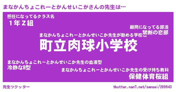 | 欧米人風あだ名 | 『マイケルまなかんちょこれーとかんせいこか』 |