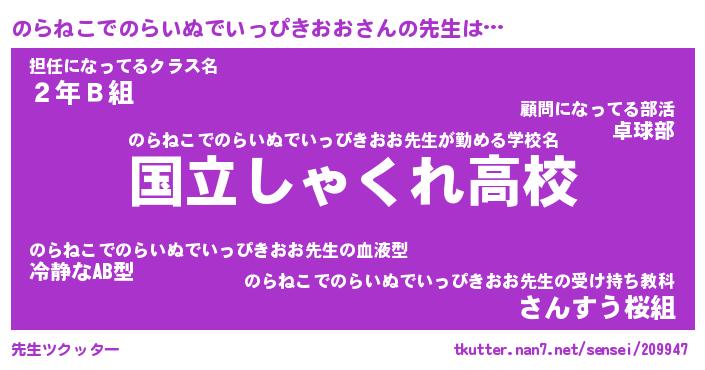 | 意味不明あだ名 | 『ペロリンのらねこでのらいぬでいっぴきおお』 |