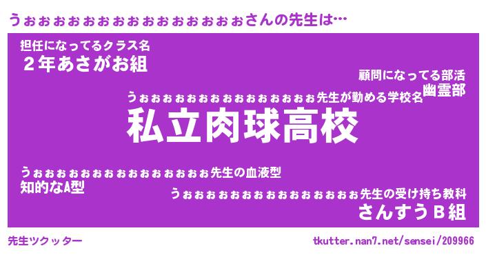 | 男性向けラノベタイトル風あだ名 | 『うぉぉぉぉぉぉぉぉぉぉぉぉぉぉぉの憂鬱』 |