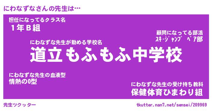 | ヘコむあだ名 | 『にわにゅー』『牛乳』『にわっぺ』 |