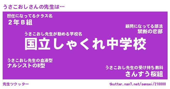 | 伝説のあだ名 | 『伝説のスナイパーうさこおし』 |