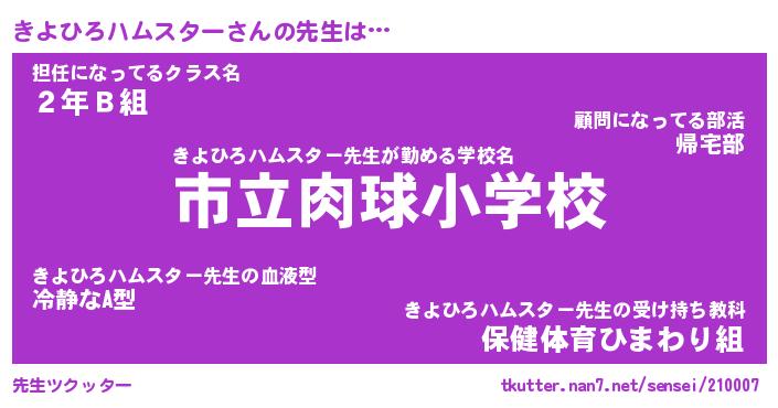 | ヒーロー風カッコイイあだ名 | 『スーパーキヨヒロハムスター』 |