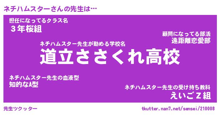 | ヒーロー風カッコイイあだ名 | 『スーパーネチハムスター』 |