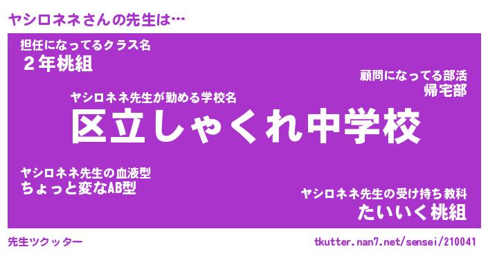| 男性向けラノベタイトル風あだ名 | 『ヤシロネネアートオンライン』 |