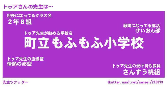 | 意味不明あだ名 | 『ペロリントゥア』『トゥアフォーエバー』 |