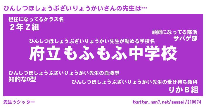 | 意味不明あだ名 | 『ペロリンひんしつほしょうぶざいりょうかい』 |