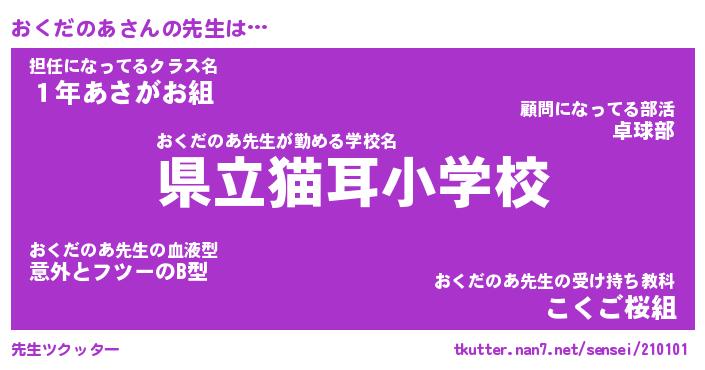 | ヘコむあだ名 | 『おくにー』『なまこ酢』『おくっ子』 |