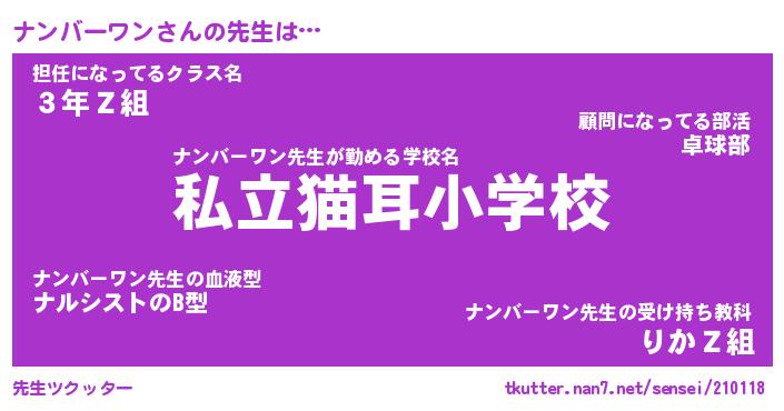 | ヒーロー風カッコイイあだ名 | 『スーパーナンバーワン』『幻影騎士ナン』 |
