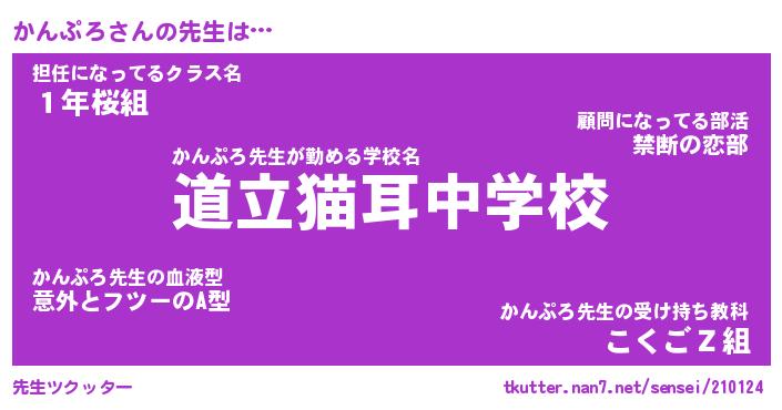 | 意味不明あだ名 | 『ペロリンかんぷろ』『永久保存かんぷろ』 |
