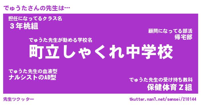 | 意味不明あだ名 | 『ペロリンでゅうた』『永久保存でゅうた』 |