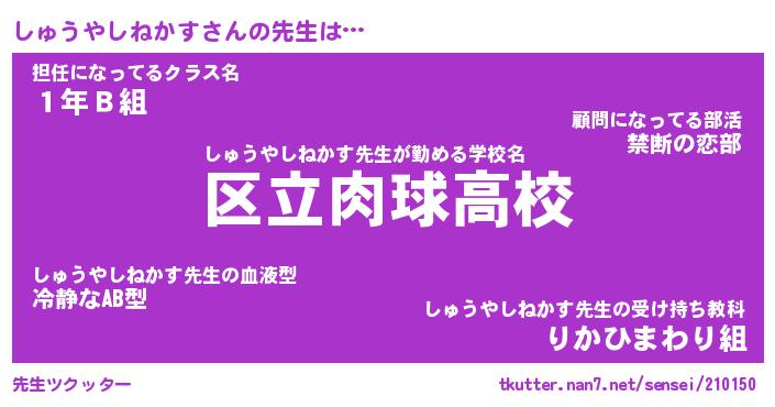 | 胡散臭い通販商品みたいなあだ名 | 『億万長者になれる水晶球…その名も「しゅうやしねかす」』 |