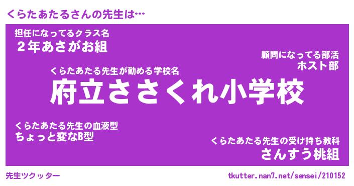 | ツイッター | くらたあたるさんのツイッターID『dendenmushi_kun』 |