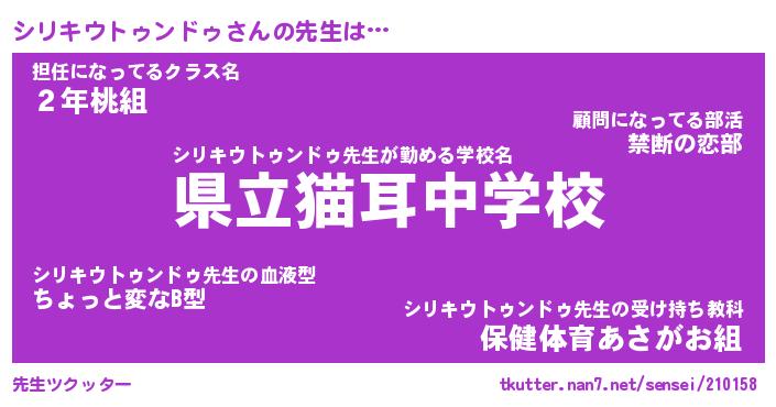 | 学校 | シリキウトゥンドゥ校長が勤める学校の名前『私立男子メラメラ中学校』 |