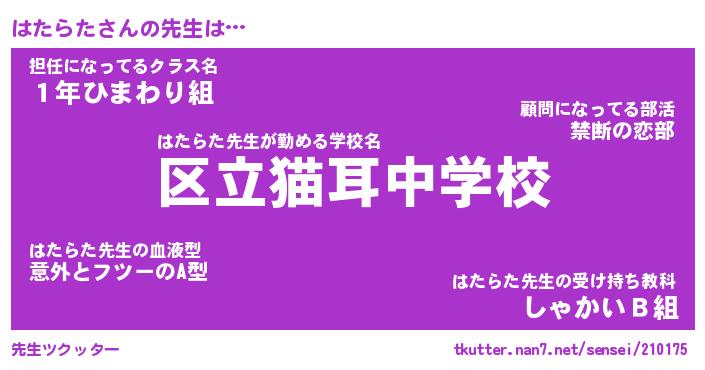 | ファンタジー風あだ名 | 『ハタフェル』『エターナルハタラター』 |