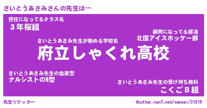 | 伝説のあだ名 | 『封印されしスナイパーさいとうあさみ』 |