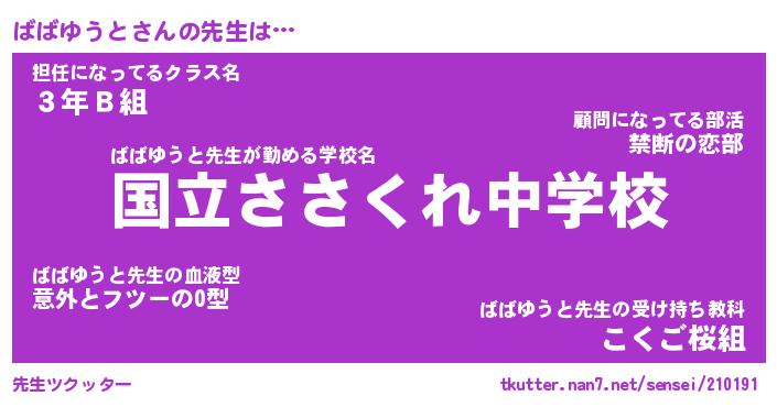 | ファンタジー風あだ名 | 『ババフェル』『エターナルババユウトー』 |