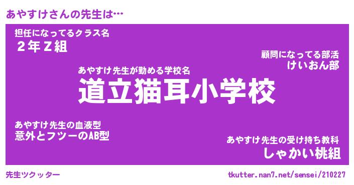 | ファンタジー風あだ名 | 『アヤフェル』『エターナルアヤスケー』 |