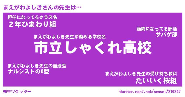 | 胡散臭い通販商品みたいなあだ名 | 『必ず成功する霊験あらたかなお札…その名も「まえがわよしき」』 |