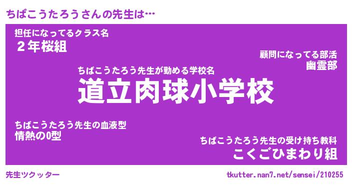 | ヒーロー風カッコイイあだ名 | 『スーパーチバコウタロウ』 |