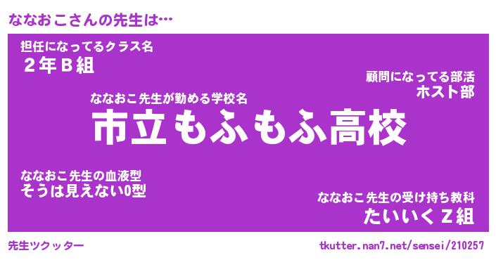 | ヘコむあだ名 | 『ななにゅー』『豆乳』『ななっぺ』 |