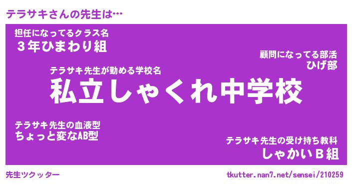 | ファンタジー風あだ名 | 『テラフェル』『エターナルテラサキー』 |