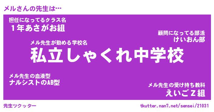 | 男性向けラノベタイトル風あだ名 | 『メルの憂鬱』 |