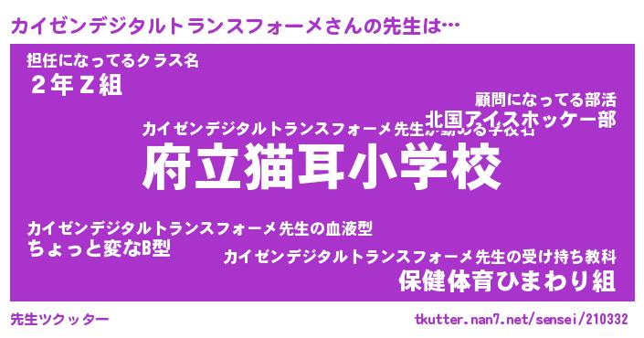 | 伝説のあだ名 | 『封印されし竜騎士カイゼンデジタルトランスフォーメ』 |