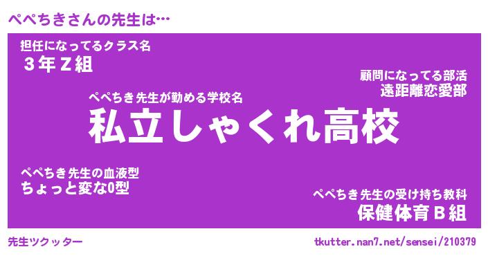 | 意味不明あだ名 | 『ペロリンぺぺちき』『永久保存ぺぺちき』 |