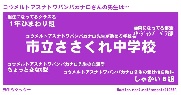 | 胡散臭い通販商品みたいなあだ名 | 『必ず成功する霊験あらたかなお札…その名も「コウメルトアスナトワバンバカナロ」』 |