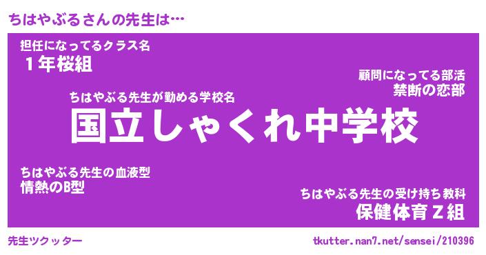 | ファンタジー風あだ名 | 『チハフェル』『エターナルチハヤブルー』 |