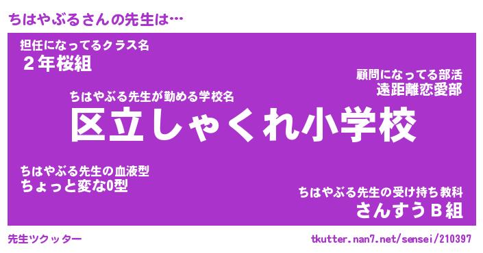 | ファンタジー風あだ名 | 『チハフェル』『エターナルチハヤブルー』 |