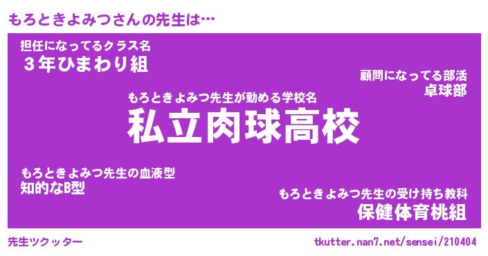 | 恥ずかしいあだ名 | 『プリティーもろときよみつ』『もろちん』 |