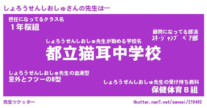 | ヘコむあだ名 | 『しょにー』『牛乳』『しょを』 |