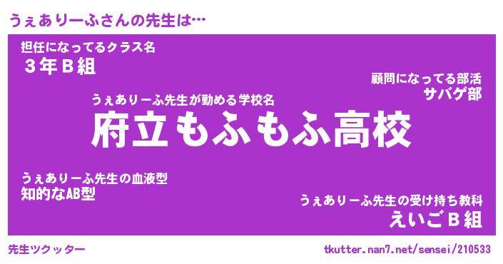 | 2回繰り返すあだ名 | 『うぇうぇ』『ううぇぇ』『ぬらぬら』 |