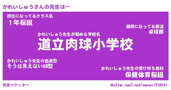 | 肩書あだ名 | 『かれいしゅうCEO』『かれいしゅう担任』 |