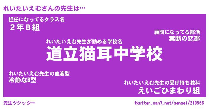| ヘコむあだ名 | 『れいにー』『なまこ酢』『れい太郎』 |