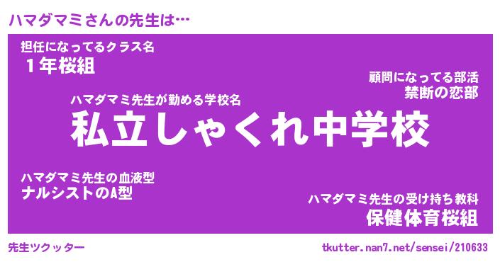 | ファンタジー風あだ名 | 『ハマフェル』『エターナルハマダマミー』 |